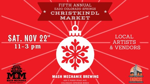 Fifth Annual EaDo Colorado Springs Christkindl Market at Mash Mechanix Brewing 🎄 Get into the holiday spirit at the Fifth Annual EADO Christkindl Market — Saturday, November 22nd from 11 AM to 3 PM at Mash Mechanix Brewing, 429 E Pikes Peak Ave in downtown Colorado Springs. This is your chance to shop an incredible lineup of local artists and vendors offering everything from handcrafted holiday gifts and ornaments to festive décor and treats — perfect for checking off your Christmas list. While